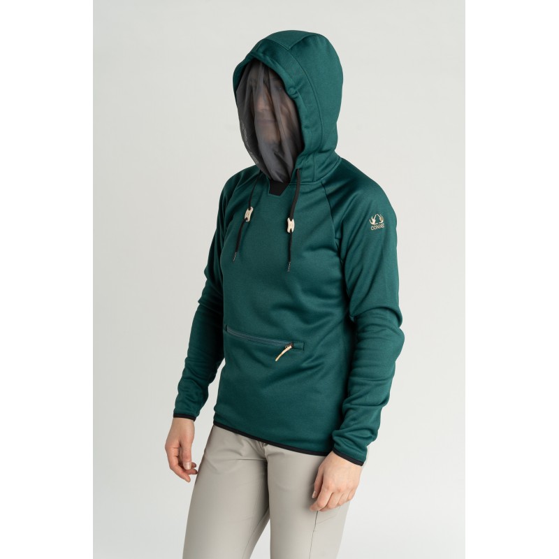 The women Maple Hoodie has the most efficient bug protection with its integrated mosquito net built in the hood.You can decide to wear the hood with or without the net. In addition to its softness and stretch, the fabric is highly moisture wicking, breathable and dries quickly. The raglan sleeve design gives full articulation on shoulders. The zipped pocket secure your items.
